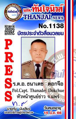 ร.ต.อ.ธนาเดช ดอกจือ หัวหน้าศูนย์ข่าวหนังสือพิมพ์ทันใจนิวส์จังหวัดแพร่
