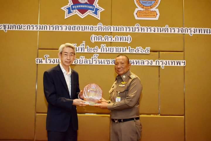 ท่านพล.ต.อ.สุวัฒน์ แจ้งยอดสุข ผู้บัญชาการตำรวจแห่งชาติ มอบหมายให้ ท่านพล.ต.ต.ดร.เสนิต สำราญสำรวจกิจ รองผู้บัญชาการตำรวจนครบาล เป็นตัวแทน มอบโล่เกียรติคุณ แก่ผู้สนับสนุนการดำเนินงานกต.ตร.กทม. แก่ ดร.พีรวัฒน์ สุรเศรษฐ ประธานกต.ตร.กทม.(ภาคประชาชน), ดร.ธัชวิน สุรเศรษฐ ประธานกต.ตร.บก.น.1, คุณกิตติพงษ์ เตรัตนชัย, คุณศักดิ์ณรงค์ โลจนะรุ่งสิริ, ดร.สัณหวุฒิ ธรรมชวนวิริยะ, คุณสุพจน์ พงศ์บุญคุ้มลาภ, คุณประกิต ประสิทธิ์ศุภผล และคุณเสถียร เศรษฐสิทธิ์ ณ โรงแรม Royal Princess วันอังคารที่ 27 ก.ย. 65