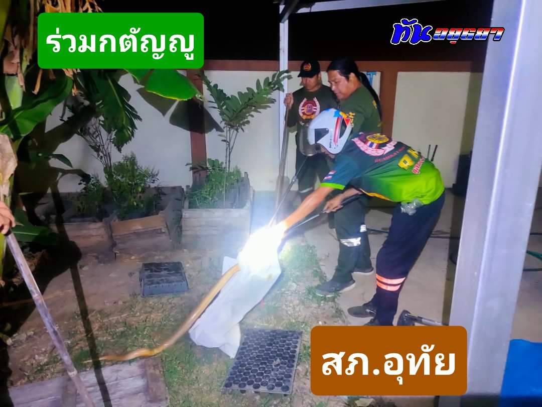 จนท. อาสาร่วมกตัญญูดำเนินการจับงูเห่าสีทองได้เป็นที่เรียบร้อย 🙏