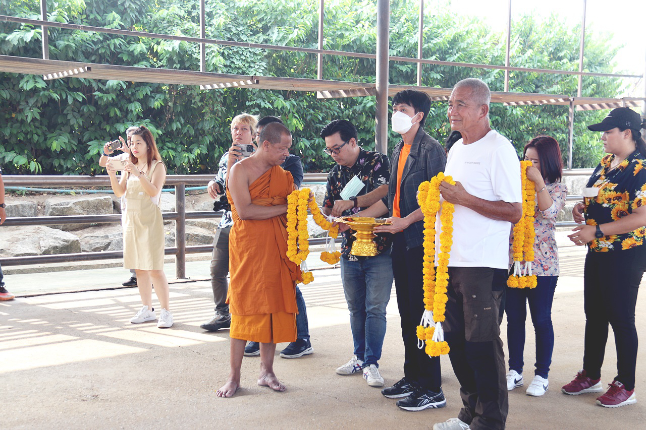 โดยนายกัมพล ตันสัจจา ประธานสวนนงนุชพัทยา พร้อมด้วยพระครูเกษมกิตติโสภณ (อาจารย์จ่อย) เจ้าอาวาสวัดสามัคคีบรรพต เป็นประธานในพิธีรับขวัญลูกช้าง ด้วยการคล้องพวงมาลัย เจิมหน้าผาก ปะพรมน้ำพระพุทธมนต์ให้กับแม่ช้างและลูกช้าง เพื่อเป็นการรับขวัญ