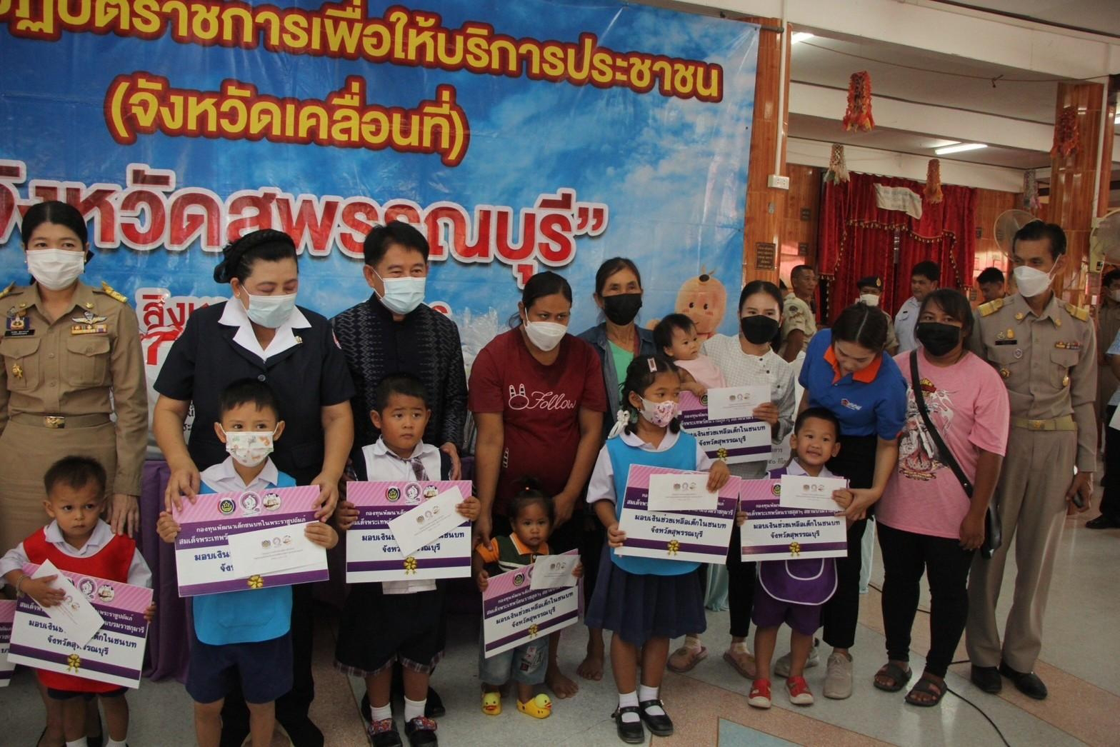 วันนี้ (24 ส.ค.66) ที่วัดมาบพะยอม หมู่ที่ 5 ตำบลหนองราชวัตร อำเภอหนองหญ้าไช จังหวัดสุพรรณบุรี นายณัฐภัทร สุวรรณประทีป ผู้ว่าราชการจังหวัดสุพรรณบุรี พร้อมด้วย นางนภัสสร สุวรรณประทีป นายกเหล่ากาชาดสุพรรณบุรี นำส่วนราชการ เจ้าหน้าที่ และหน่วยงานต่างๆ รัฐวิสาหกิจ และภาคเอกชน ออกให้บริการประชาชน ตามโครงการปฏิบัติราชการเพื่อให้บริการประชาชน (จังหวัดเคลื่อนที่) "หน่วยบำบัดทุกข์ บำรุงสุข" พร้อมมอบทุนการศึกษาแก่เด็กนักเรียน มอบข้าวสารเพื่อเป็นอาหารกลางวันแก่เด็กนักเรียนให้กับโรงเรียนในพื้นที่ มอบถุงยังชีพให้แก่ผู้ยากจน ผู้ด้อยโอกาส ผู้พิการ และผู้สูงอายุในพื้นที่ตำบลหนองราชวัตร