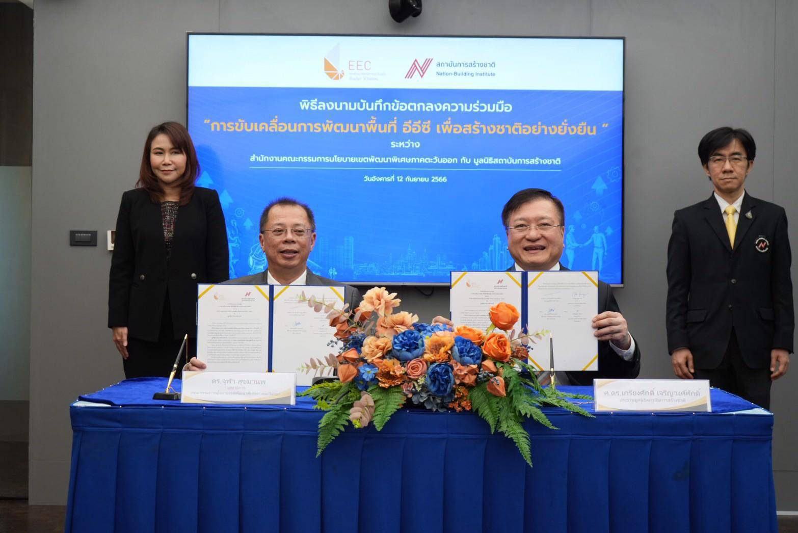 สำนักงานคณะกรรมการนโยบายเขตพัฒนาพิเศษภาคตะวันออก (สกพอ.) ได้ลงนาม “บันทึกข้อตกลงความร่วมมือการขับเคลื่อนการพัฒนาพื้นที่ อีอีซี เพื่อการสร้างชาติอย่างยั่งยืน” โดยมี ดร. จุฬา สุขมานพ เลขาธิการ สกพอ. และ ศาสตราจารย์ ดร. เกรียงศักดิ์ เจริญวงศ์ศักดิ์ ประธานมูลนิธิ สถาบันการสร้างชาติ โดยมีนางธัญรัตน์ อินทร รองเลขาธิการ สกพอ. และ ดร.อมรศักดิ์ กิจธนานันท์ ผู้อำนวยการหลักสูตรนักบริหารระดับสูงเพื่อการสร้างชาติ ร่วมเป็นสักขีพยานการลงนาม รวมทั้งยังได้เกียรติจากผู้ทรงคุณวุฒิ ร่วมงานฯ อาทิ ดร. ธาริศร์ อิสสระยั่งยืน รองเลขาธิการ สกพอ. , ดร. ธัชพล กาญจนกูล. รองเลขาธิการ สกพอ. , นายไชยวัฒน์ สินสุวงศ์ อดีตรัฐมนตรีว่าการกระทรวงอุตสาหกรรม และ ดร.ธีรภัทร ประยูรสิทธิ อดีตปลัดสำนักนายกรัฐมนตรี อดีตปลัดกระทรวงเกษตรและสหกรณ์