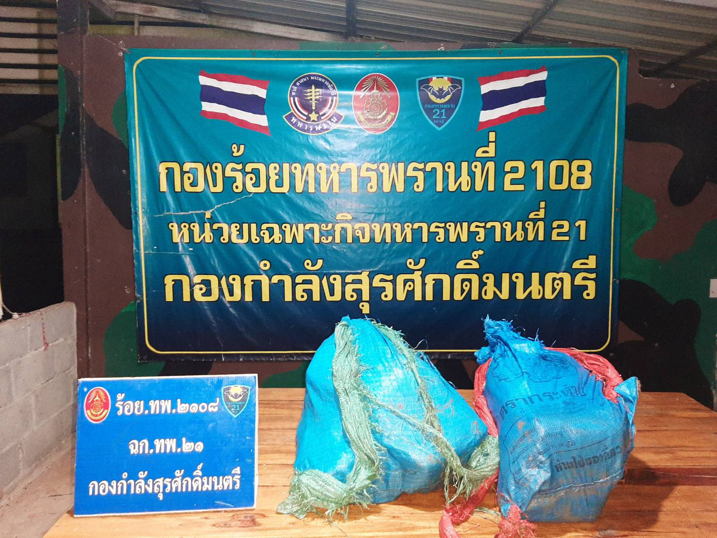 กำลังป้องกันชายแดนหน่วยเฉพาะกิจกรมทหารพรานที่ 21 ปฏิบัติการซีลชายแดน ตรวจยึดยาบ้า 129 มัด จำนวน 258,000 เม็ด