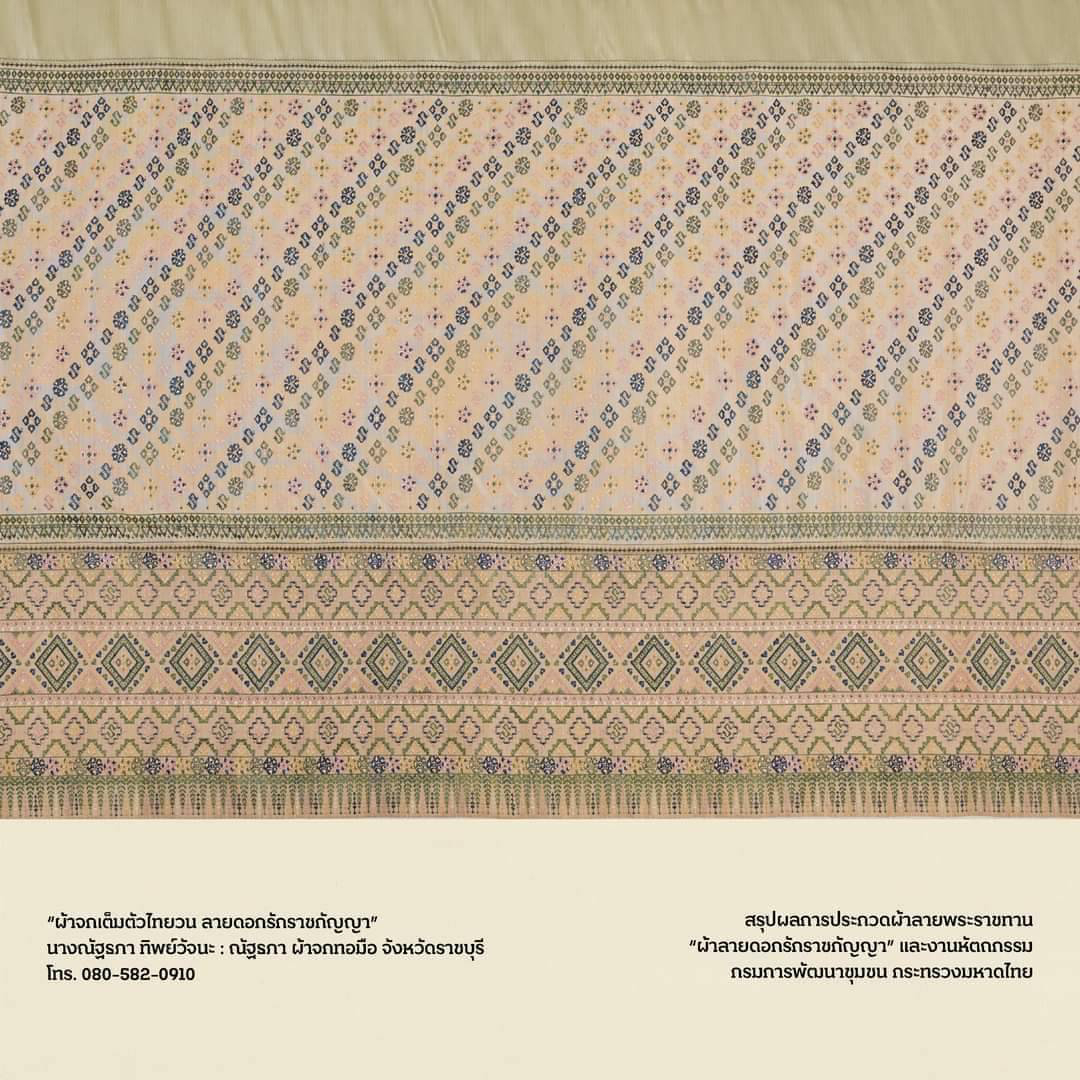 ผ้าชาติพันธุ์/ผ้าจกเต็มตัวไท-ยวน ลายดอกรักราชกัญญา นางณัฐธภา ทิพย์วัจนะ อ.จอมบึง ได้รับรางวัล เหรียญนากพระราชทาน